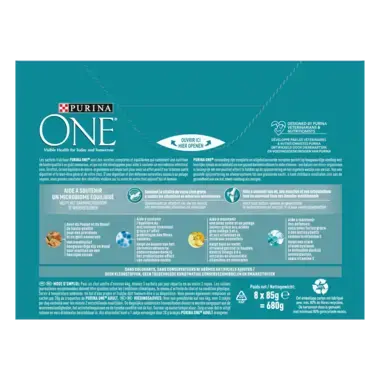PURINA ONE® natvoer is een volledige en gebalanceerd voeding, speciaal ontwikkeld door dierenartsen en voedingsdeskundigen om doelgerichte, kwalitatief hoogwaardige voeding te combineren met een heerlijk smaak.